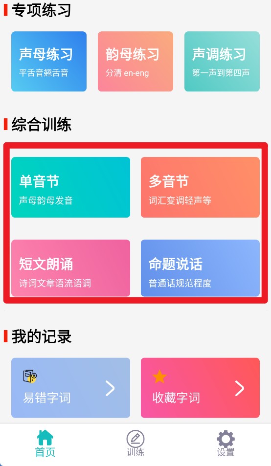 学说普通话app是一款能帮助学员快速学习普通话的软件,采用了普通话水平测试同步的智能评分技术,通过智能纠音功能辅助使用者精准掌握发音要点。它结合了历年考试真题模拟训练、重点字词专项练习,全面帮助使用者全面提升普通话口语水平。目前支持日常自测打分,方便使用者随时检验学习成效,轻松备考普通话等级考试。