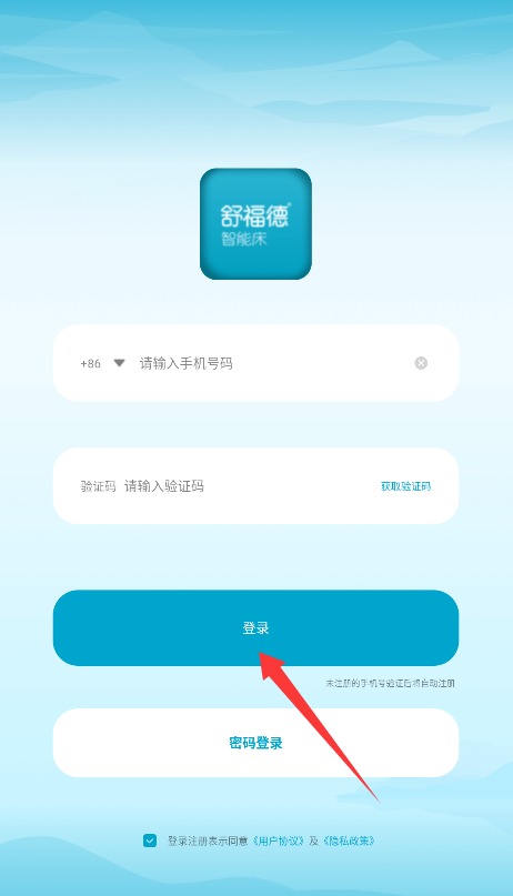 2、输入已注册的手机号和密码,勾选同意选项后点击登录进入应用主界面。