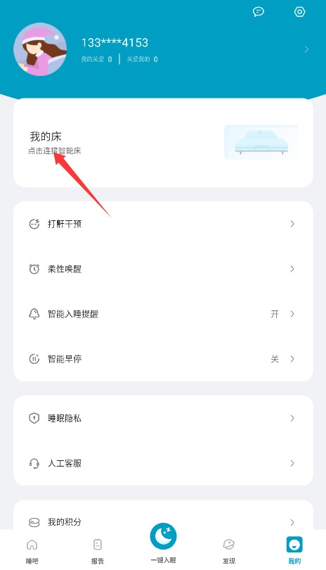 3、在个人中心选择我的床功能,完成设备连接后即可开始使用智能调节功能。