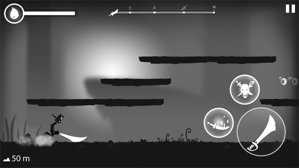 3、点击屏幕任意位置可以进行跳跃,再次点击会进行二段跳,而屏幕右边则是攻击键和技能键,