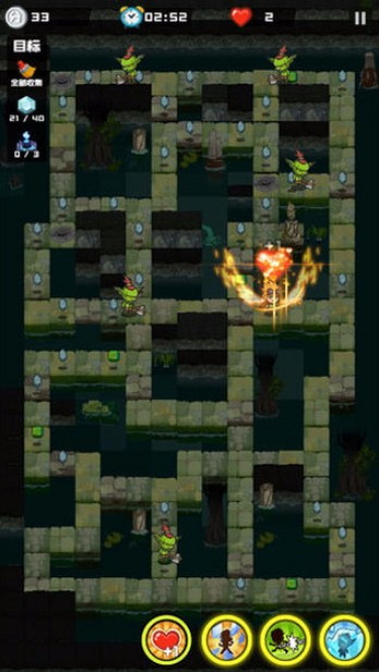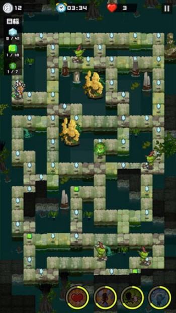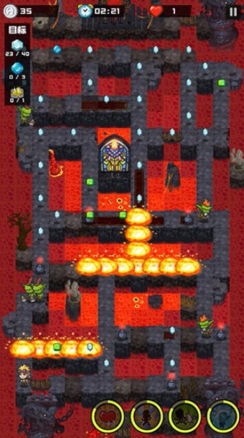 3、限时闯关紧张刺激:每关设有严格时间限制,需在躲避哥布林与陷阱的同时集齐所有钻石,失败即重来,强化节奏感与紧迫感。