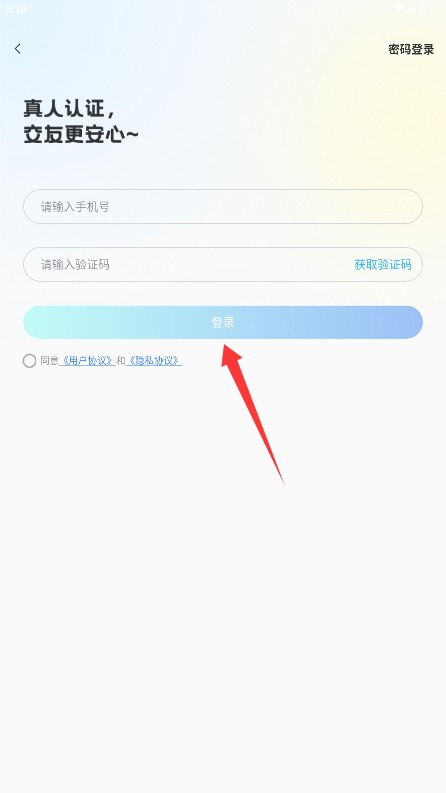 1、在登录页面填写手机号码和验证码,勾选同意相关条款后点击登录按钮完成验证。