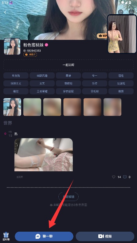 4、进入用户主页后点击底部聊一聊按钮,即可发起私聊对话开始交流互动。