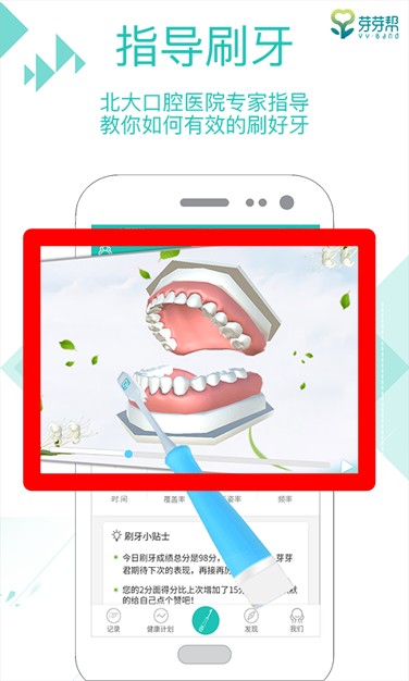 2、刷牙指导功能由北大口腔医院专家参与设计,帮助用户掌握科学有效的刷牙方法。