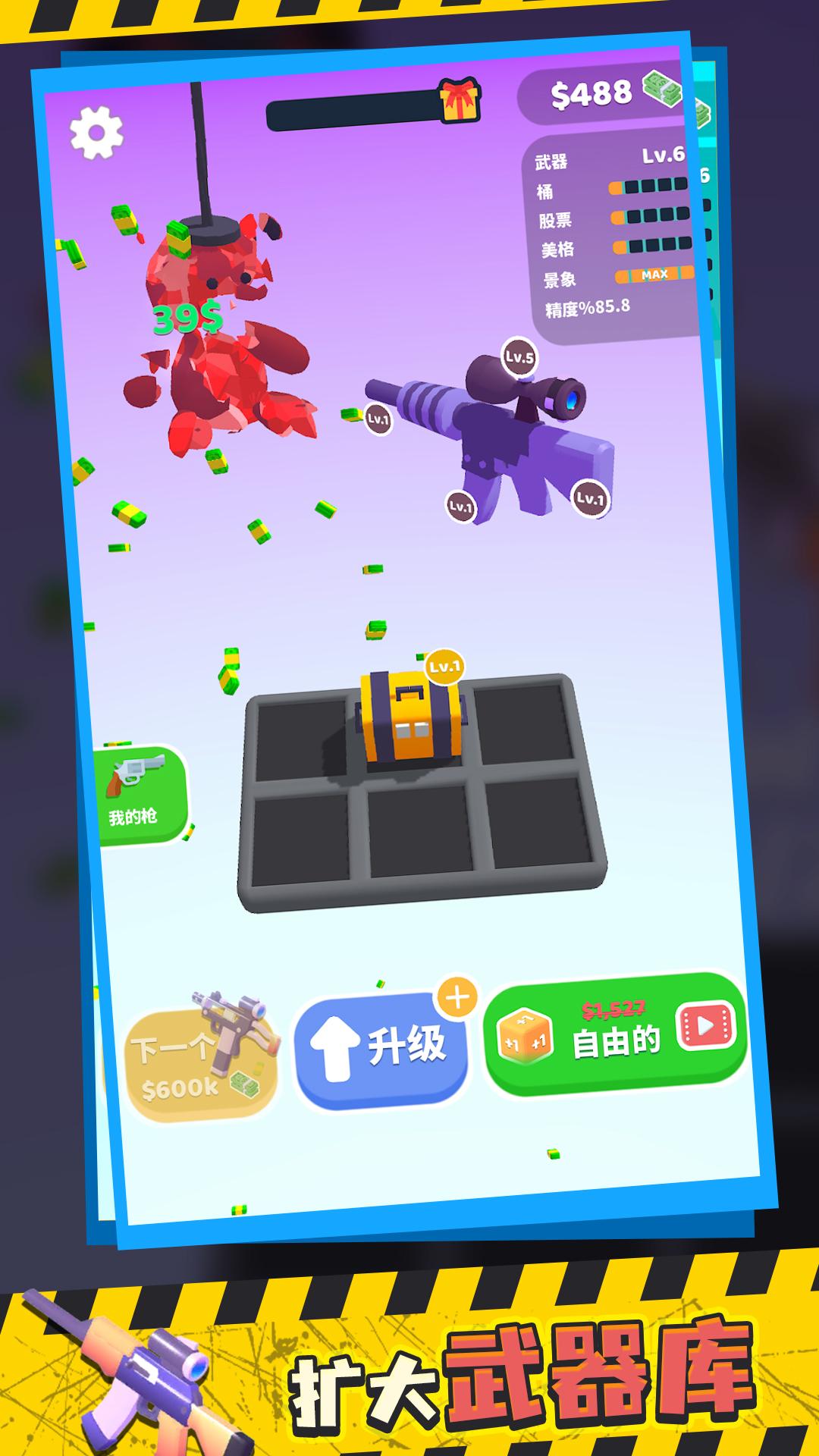 枪王之战这部射击闯关游戏中,拥有大量的关卡供玩家们挑战,而且随着不断地射击,我们的武器也会不断地进行更新升级,从左轮手枪逐渐变成AK-47、狙击步枪等等。用武器打碎不同的物品也会获得相应的金币,简单易上手的游戏玩法和十分解压的游戏体验能够让玩家们的休闲娱乐时间变得更加充实。