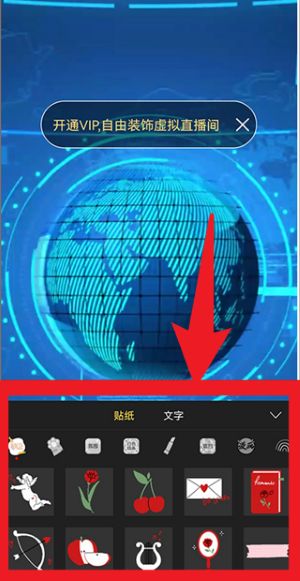 5、在贴纸与文字区域,可自由选择多种风格贴纸或文本标签,为直播画面增添趣味与个性化效果,打造更具吸引力的直播内容。