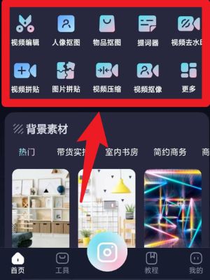 2、继续下滑页面,在工具栏区域可选择视频编辑、人像抠图、物品抠图、提词器、视频去水印等多种实用功能,满足多样化直播辅助需求。