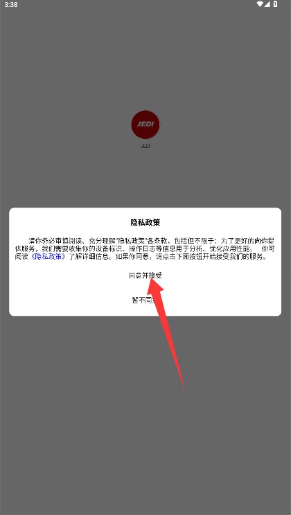 1、初次使用需阅读平台服务条款与隐私政策,确认后点击同意并接受按钮进入应用。