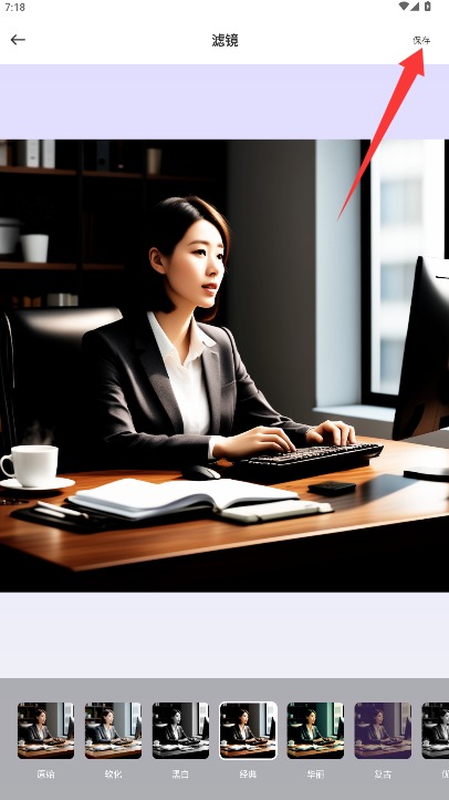 4、选择喜欢的滤镜视觉效果并调整具体参数,编辑满意后点击保存按钮存储最终成品照片。