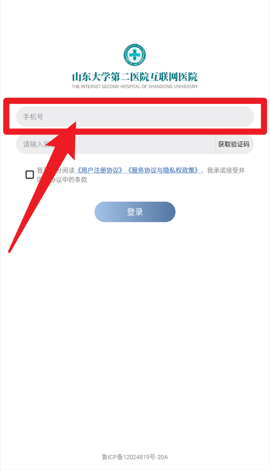 1、首先在登录页面输入本人注册的手机号码,确保号码正确无误,以便后续能够正常接收验证码信息。