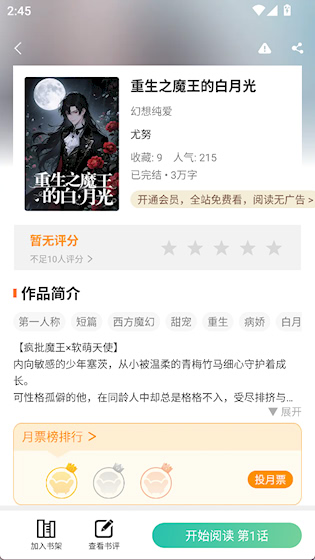 3、个性化书架管理:支持将喜欢的作品加入书架,并可自定义分类,便于快速找到想看的内容,提升阅读效率。