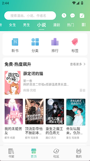 2、免费阅读体验:所有漫画均可免费观看,无需额外付费,同时包含小说、短漫等其他免费内容,提升整体娱乐性。