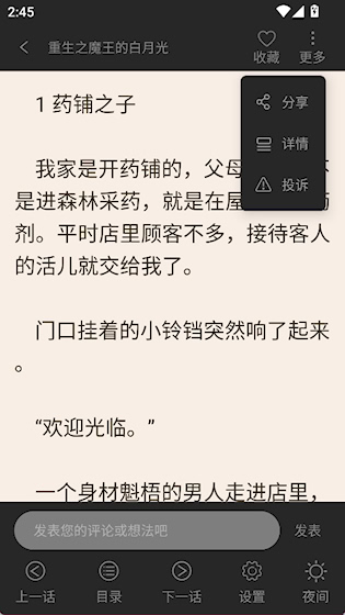2、在阅读界面点击右上角更多,选择详情
