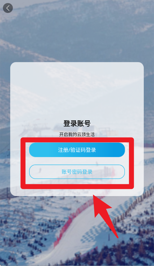 1、在登录界面,用户可以选择注册或验证码登录,也能通过账号密码快速登录,轻松进入平台开启云顶冰雪生活。
