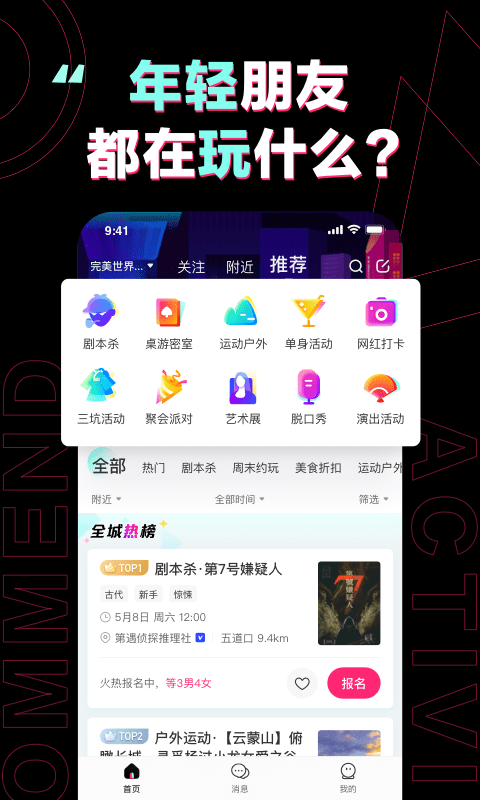 3.热门活动推荐,快速查看平台好友都在参加什么活动,为你匹配推荐相关活动