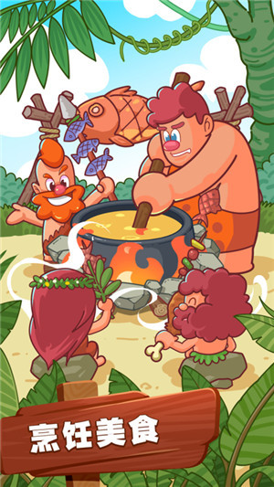 《狩猎吧!原始人》是一款融合模拟经营与放置卡牌玩法的休闲手游,用卡通画风展现史前文明世界,玩家扮演部落酋长,在巨兽横行的原始时代中带领族人生存与发展,通过狩猎远古生物、驯养奇异动物、建设部落设施来逐步壮大族群。