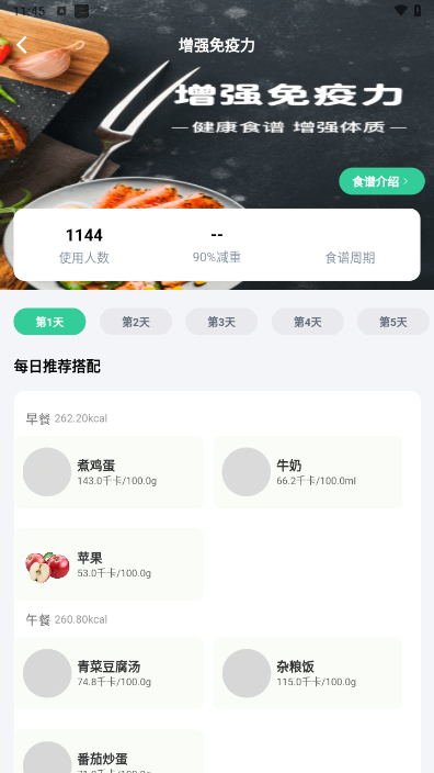 4. 科学食谱:提供减脂减重、轻断食、健康饮食等多种类型的定制轻断食方案。