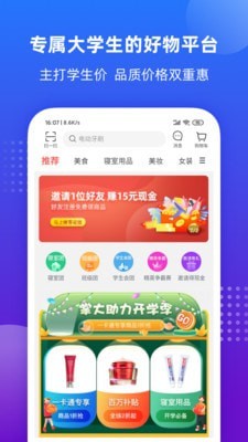 《掌上大学》APP联合了各大企业为大学生提供了非常多优质的商品,是专属于大学生的好物平台,各种寝室神器、拼团活动专属学生价、内部隐藏优惠券、品质的保障以及送货到寝服务,能让你享受独家的优惠与服务。
