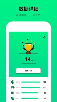 1、非常便捷的测试模式,让您可以在短时间内快速测试网络速度;