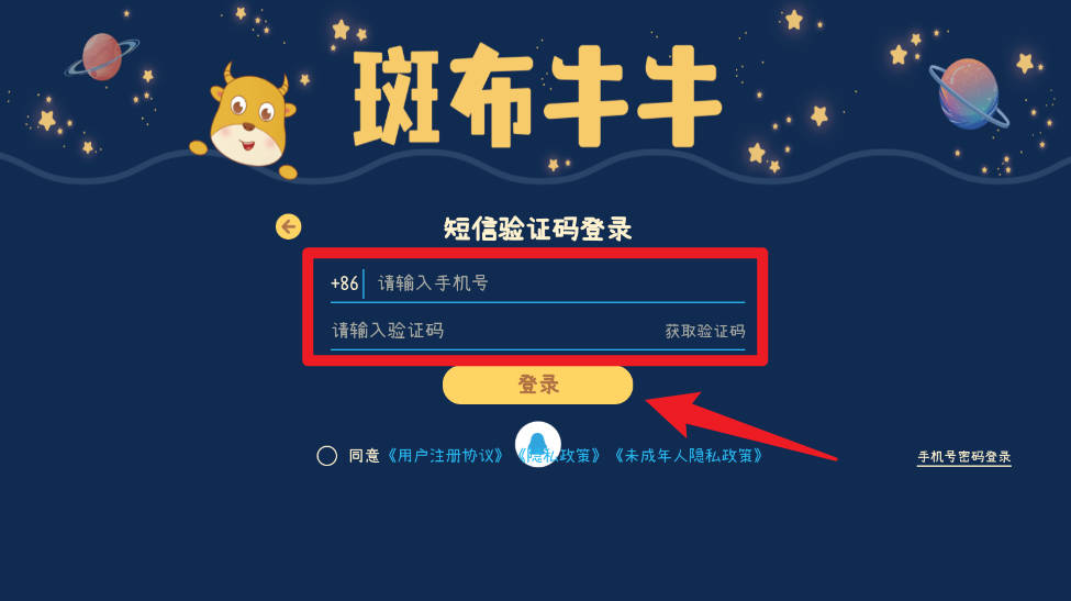 1、进入登录页面后,输入手机号码,并输入收到的短信验证码,按照页面提示完成登录操作。