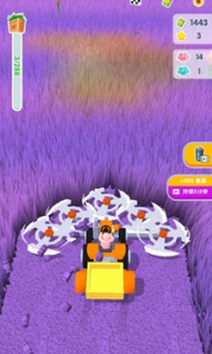 1.操控自己的割草机在牧草场中不断地进行收割清理,玩起来非常的放松解压,体验花式割草玩法。