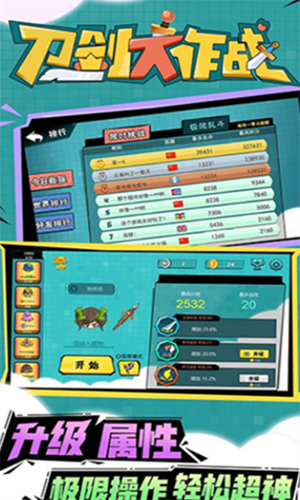 刀剑大作战这个游戏将休闲益智和冒险结合在了一起,用了玩家们喜爱的卡通效果去设计整个游戏,使玩家在游玩的时候能够感到非常的放松,它的玩法非常有趣,在游戏里玩家们将把地图上面每个区域里面的点数全部吃掉,使自己的体型越来越大,去不断地吞噬升级,及时躲开体型大的敌人和障碍物,并去击杀比我们小的敌人。