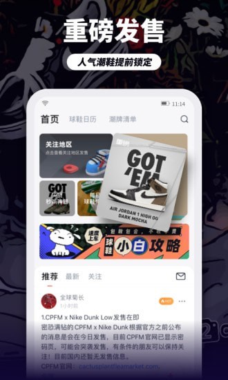 4、最新的限量球鞋为您带来最及时的发售监控提醒。