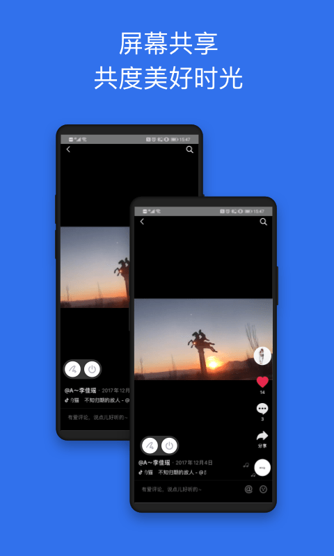 2、不管是看抖音还是看微信都可以直接屏幕共享,距离也不会阻隔你们共享的心情,拉近你们的距离;