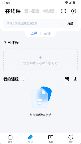 2、学习界面有在线课、图书配套和特训营