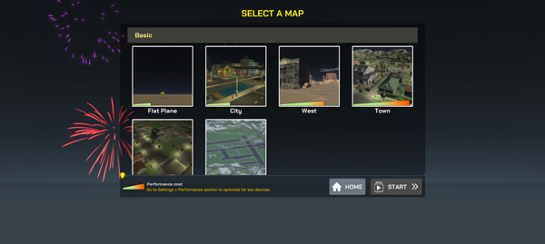 1、打开大型烟花模拟器最新版,首先选择游戏模式,现有Fps模式和构建模式等;
