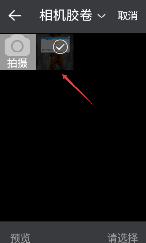 3、跳转至相册界面后,点击红框箭头指向的目标图片完成选择,即可基于该图片进行壁纸制作。