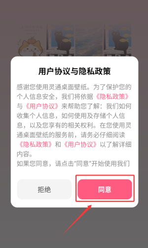 1、打开app后,会弹出隐私协议弹窗,找到红框标注的同意按钮并点击,即可继续后续操作。