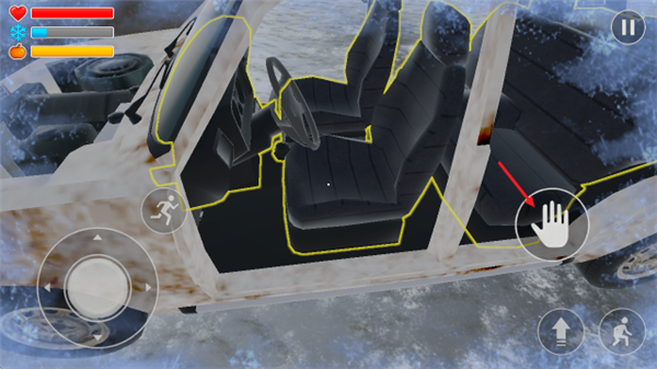 4、我们需要驾驶汽车外出寻找资源,靠近小车后,对准座椅即可上车。