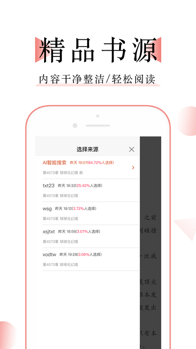 网络来源无法阅读?一键换源,让你找到最佳的小说资源,全网资源想换就换。