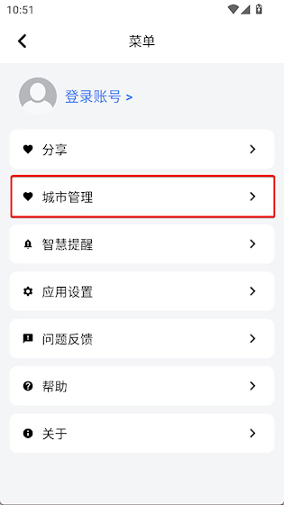 2、点击城市管理选项