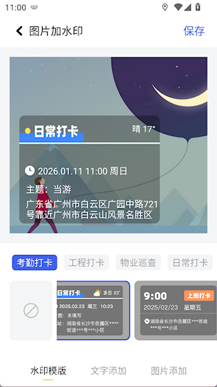 3、提供丰富的水印模板,还能添加文字、图片类型的水印