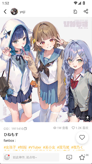 提供无水印高清大图的一键下载功能,方便保存喜欢的插画作品用于学习或收藏。图像加载速度快,画质清晰,保障良好的视觉体验与使用便利性。