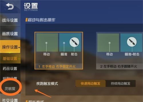 1、进入游戏后,点击设置里的灵敏度,如下图所示。
