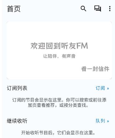 1、进入主页显示订阅列表、继续收听、收藏等