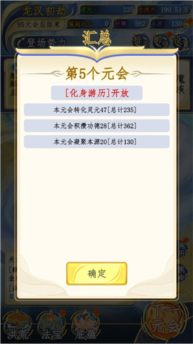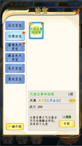 4、对立有功德的生灵赏赐法宝并助力升级,强化战力。