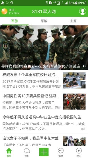3. 浏览资讯:在首页可以浏览最新的军旅资讯和论坛动态。