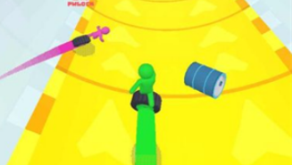 独轮乱斗这款紧张刺激的休闲跑酷游戏运用了Q版卡通的橡皮人形象,使它的整个游戏画面色彩更加丰富多彩,游戏的玩法非常简单有趣,玩家们很容易就可以上手,在游戏中选择自己喜欢的颜色去进行跑酷比赛,角色会骑在独轮车上,玩家只要控制好橡皮人的前进方向即可,精准躲避向你滚来的各种障碍物。