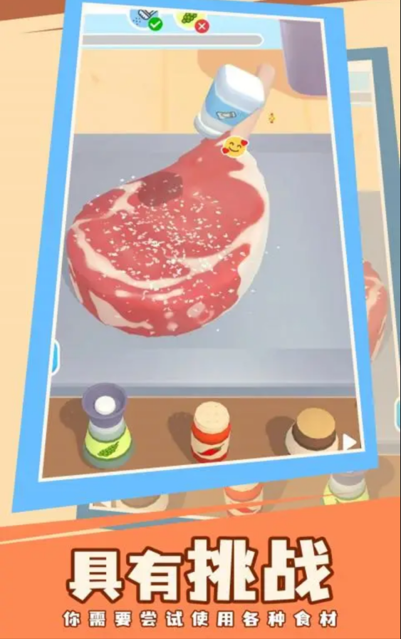 游戏的玩法相对来说还是比较简单的,用户们在这里可以灵活的发挥自己的烹饪操作,每个制作牛排的步骤讲解都是非常详细的,让你煎牛排更轻松。