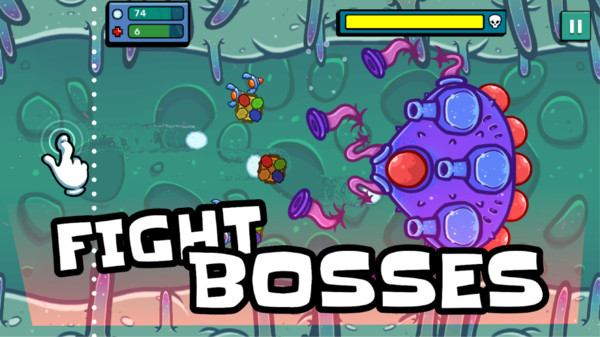 1、融入了卡通风格,以独特的视角来为你呈现出一场有趣的人体保卫战斗。