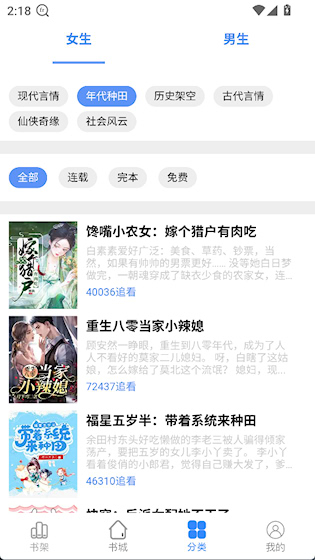1、在书城和分类界面寻找感兴趣的作品进行阅读