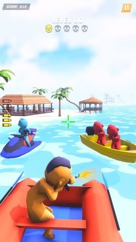 2、在快艇追逐犯罪游戏中瞄准并射击罪犯。打击黑帮在射击游戏中追逐您的赛艇,喷气滑雪和游艇。