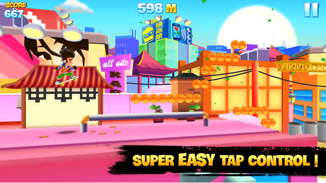 3. 收集金币:金币可以用来购买滑板和道具,提升游戏分数。玩家需要尽可能多地收集金币,同时注意避开障碍物。