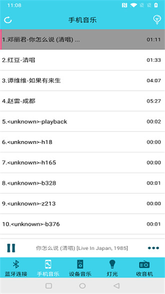 5、切换至“手机音乐”模块,自由选择并播放本地歌曲,操作流畅便捷。