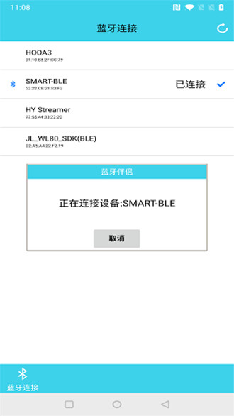 4、在“蓝牙连接”页面,点击刷新按钮即可扫描并列出附近可连接设备。