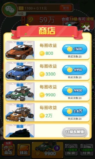 这款手游玩法轻松,非常容易上手,玩家可以在游戏中快乐合成相应的车辆,奖励多多。